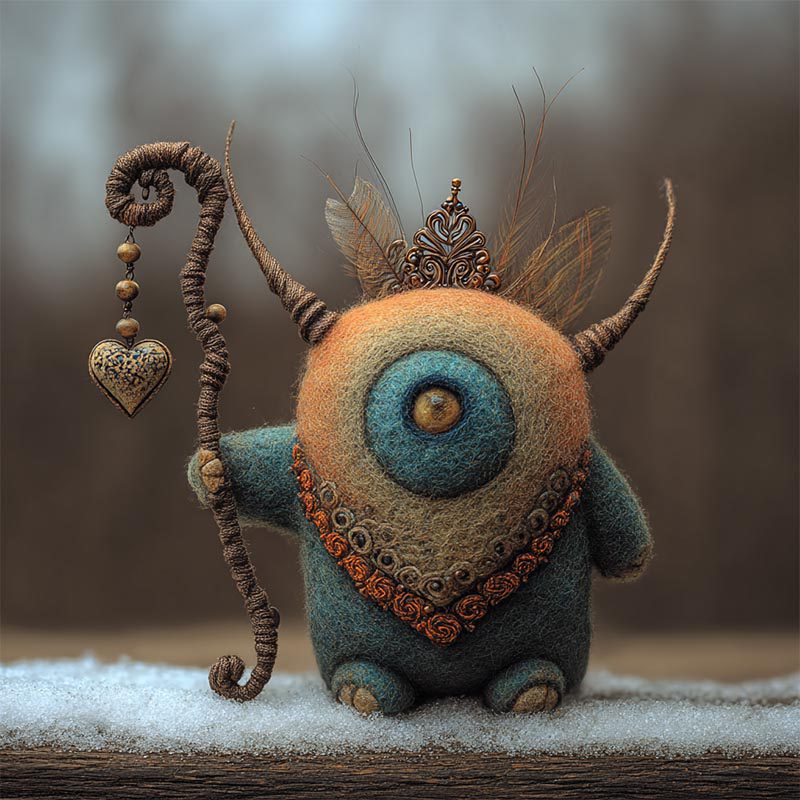 This creature’s intricate scarf is not just for adornment; it is a tapestry of fate. Every thread, every bead, and every woven flower represents a choice made and a path taken. He is the Weaver of Destinies, a humble being who guides souls to their appointed paths. But lately, the threads have been fraying, and destinies are becoming tangled. He must find the source of the chaos and restore order to the cosmic loom. But what if the source of the chaos is the Weaver himself?